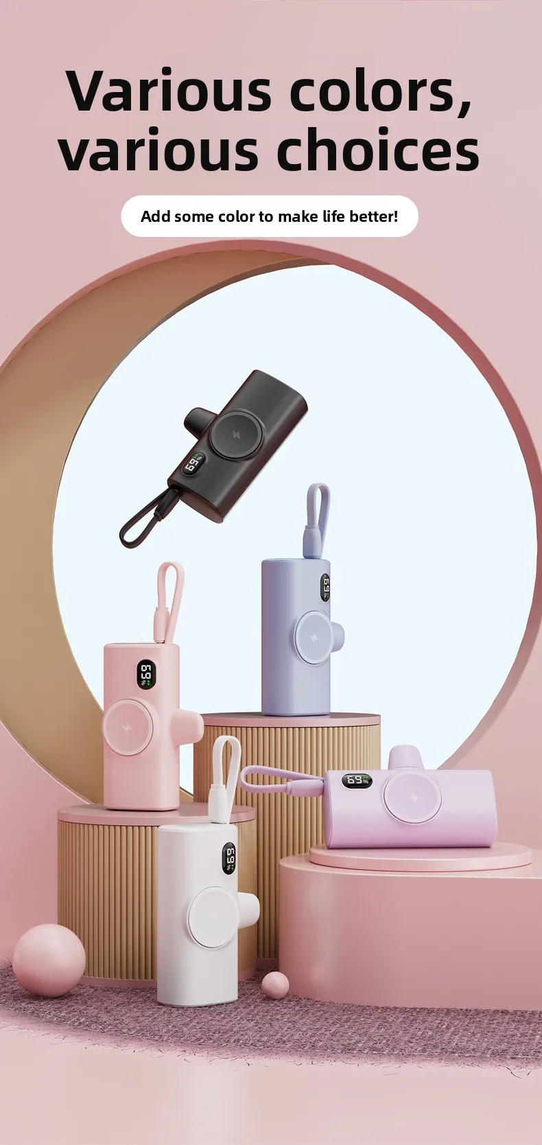- 粉色(苹果头 + type-c线)